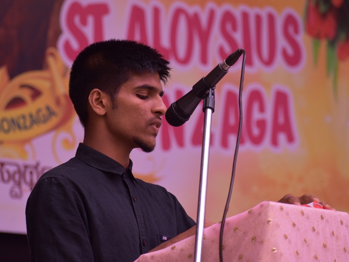 Welcoming one another is the most honorable event. Master Gagan, the President of the Student Council of St Aloysius College welcomed the gathering with his charismatic speech.